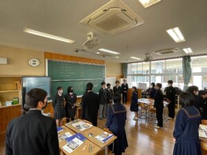 本日、天城中学校で卒業生の進路講話と商業科の出前授業を実施しました。