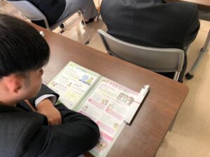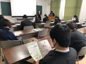 今回は、卒業後に島を出て、一人暮らしをする生徒が多いことから、消費生活と年金について講座を行いました。悪質な勧誘や消費者トラブルに巻き込まれないように真剣に聴講してました。年金については、まだ実感がないなかで、年金の大切さや仕組みについて理解できたと思います。少しずつ、社会に出ていく実感が湧き始めてきたと思います。