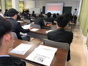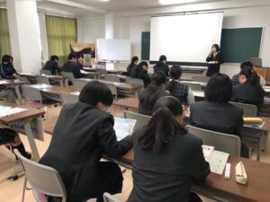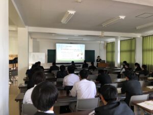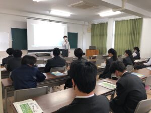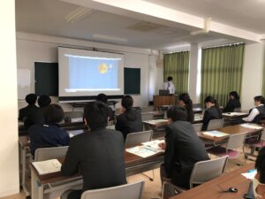 今回は、卒業後に島を出て、一人暮らしをする生徒が多いことから、消費生活と年金について講座を行いました。悪質な勧誘や消費者トラブルに巻き込まれないように真剣に聴講してました。年金については、まだ実感がないなかで、年金の大切さや仕組みについて理解できたと思います。少しずつ、社会に出ていく実感が湧き始めてきたと思います。
